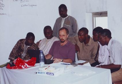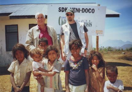 | With a Reuters Foundation colleague in rural East Timor | Rose training local reporters in Abuja, Nigeria |